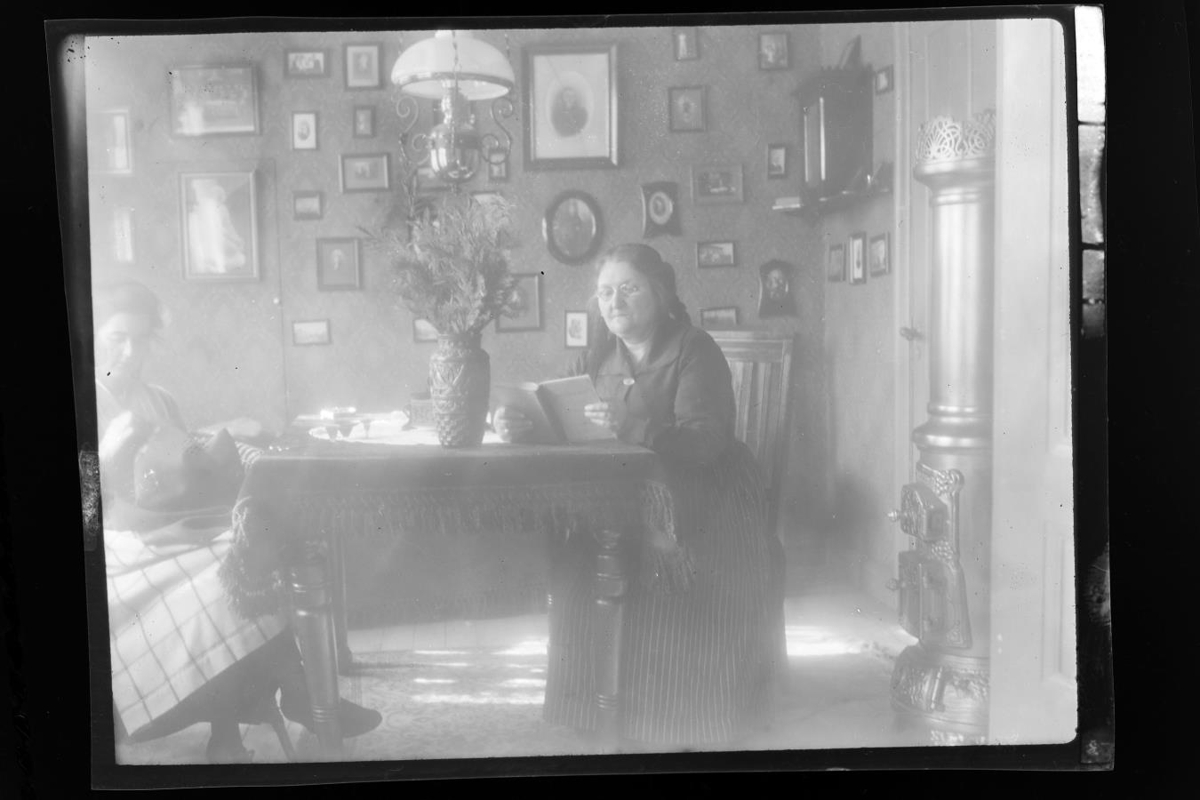 að sauma út. Ólöf Ísaksdóttir og Ólöf Ólafsdóttir.