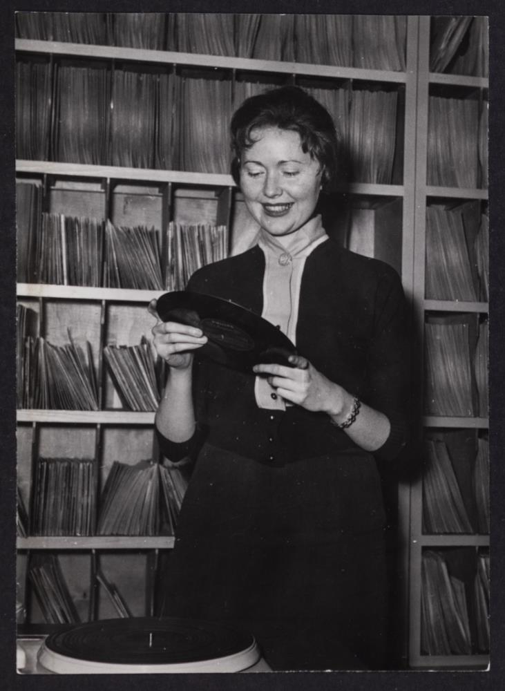 o.fl. árið 1958. (Ártal á dagatali á mynd 1240). Ingibjörg Þorbergs í plötusafninu.