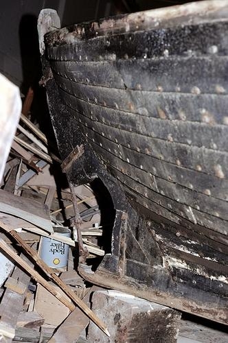 Bliki, árabátur í viðgerð á Akranesi. Séð ofan í bátinn.