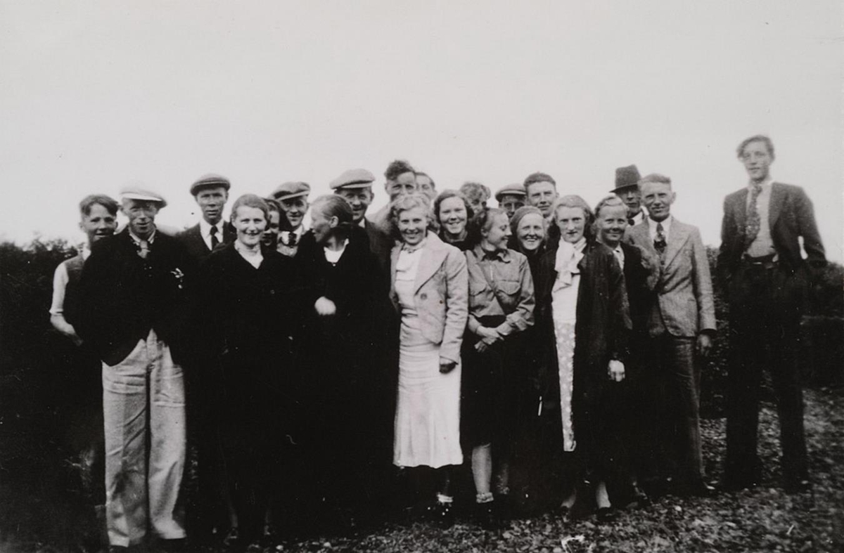Myndina tók Finnur Einarsson 1938 í skemmtiferð vegavinnumanna og fleiri í Reykholt. Bílstjóri var Finnbogi Guðlaugsson.