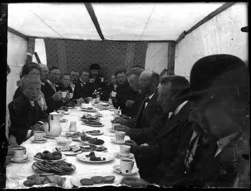 Við veisluborð, líklega í fermingarveislu
