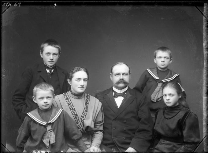 og kona hans Anna Emelía Thorsteinsson með börn sín. Talin eftir