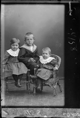 „Börn Björns Bjarnasonar frá Viðfirði og Gyðu Þorvaldsdóttur frá Ísafirði. Högni, Sigríður og Þórunn Björnsbörn. Myndin líklega tekin 1910.“ (Guðfinna Hreiðarsdóttir 2014)
