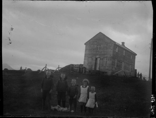 Brunnhóll á Mýrum. F.v. Einar, Benedikt, Arnór, Sigríður og Aðalheiður, börn Sigurjóns Einarssonar og Þorbjargar Benediktsdóttur.