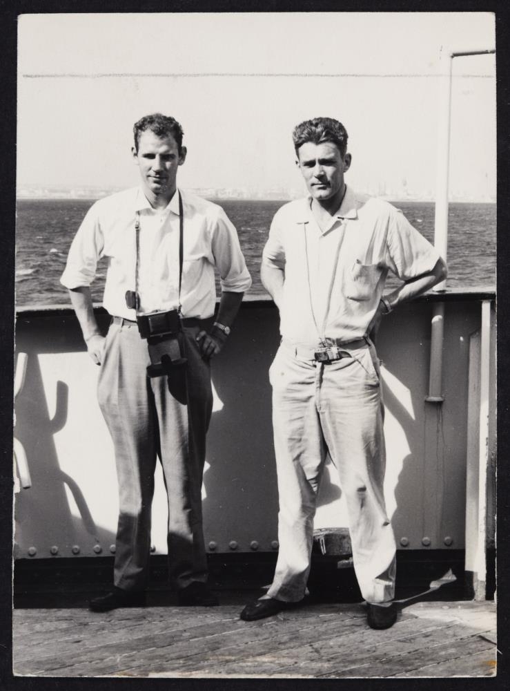 Um borð í Hamrafellinu (á leið til Íslands?). Mynd a-h. a. Radar b.? c. Ragnar Sæmundsson vélstjóri. Farið frá Aruba. d. Birgir Björnsson háseti. e. Jón Kristinn 3. stýrimaður og Jón Daníelsson 1. stýrimaður. f. Jón Daníelsson 1. stýrimaður. g. Axel Gíslason háseti og Anna. h. Fyrir utan eldhúsið. Haraldur Björnsson, Ragnar Sigurbjörnsson, Rudolf Ólafsson og Trausti Guðjónsson.