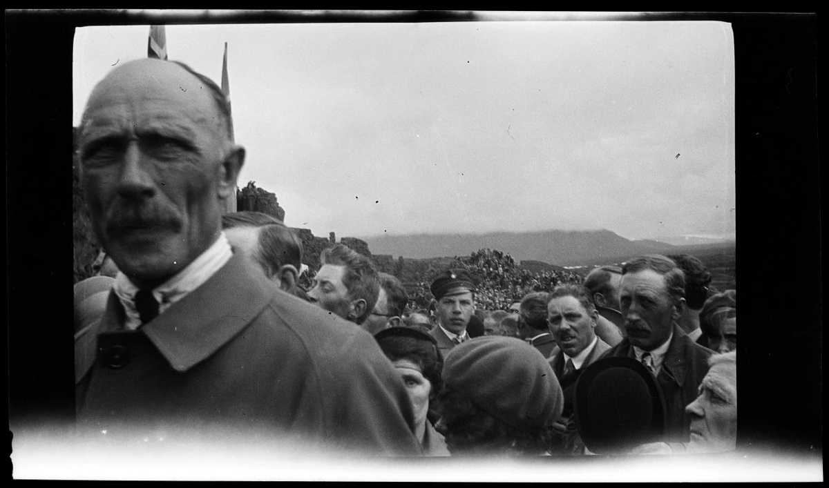 Alþingishátíðin 1930. Nærmynd af andlitum fólks á samkomu. Þekkja má Ásgeir