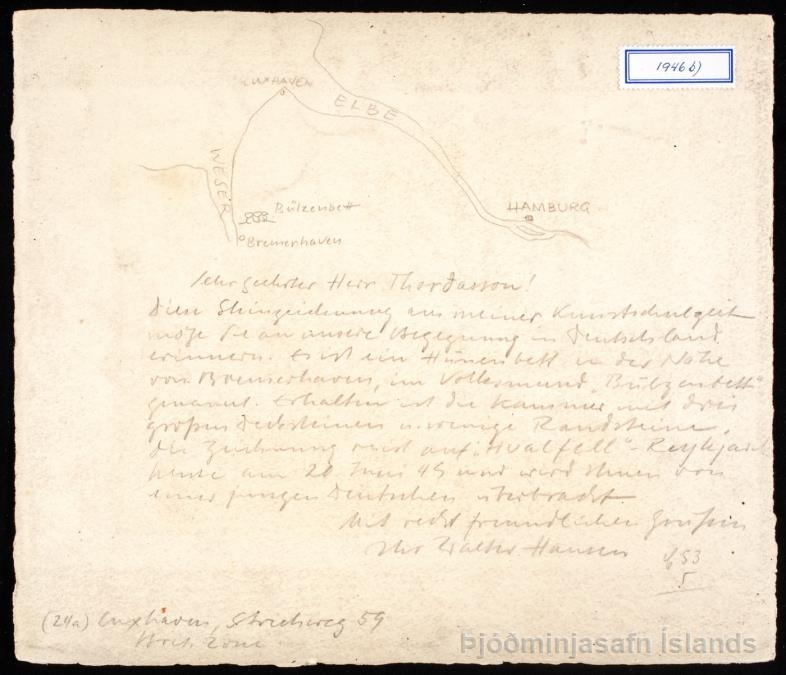 1946 merkt A) B). Tvö þrykk (frummyndir, steinprent) af þýzkum fornminjum eftir Haye-Walter Hansen.