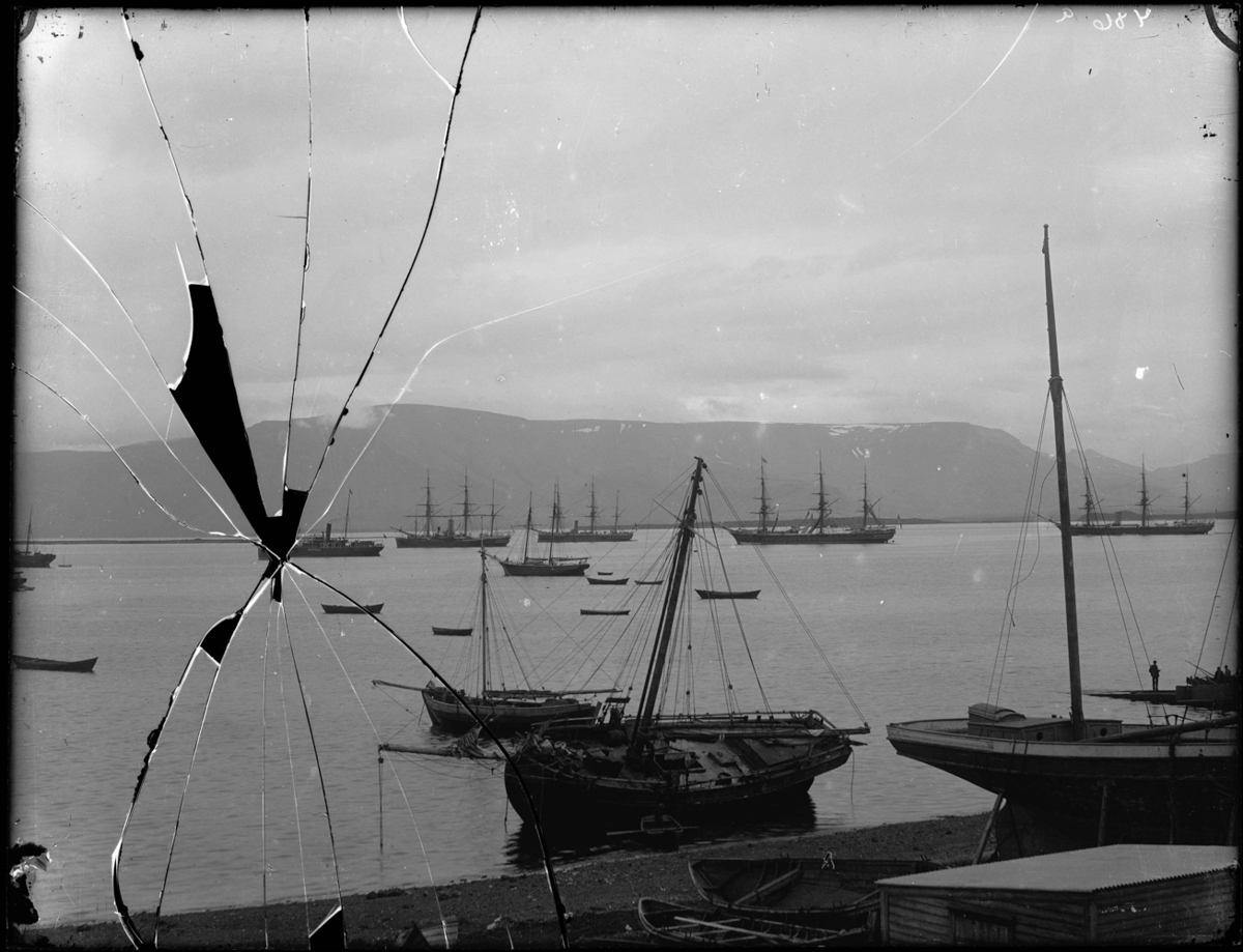 Eitt skipanna er þekkjanlegt eða Botnía, sem gekk á hafnir landsins og var líklega gerð út af Sameinaða gufuskipafélaginu.