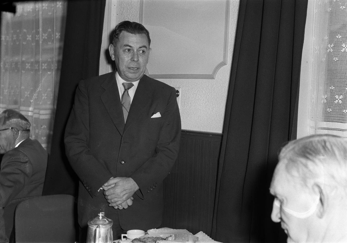 Maður að halda ræðu. Emil Jónsson / Helgi Hermann Eiríksson t.h. Landsamband iðnaðarmanna.