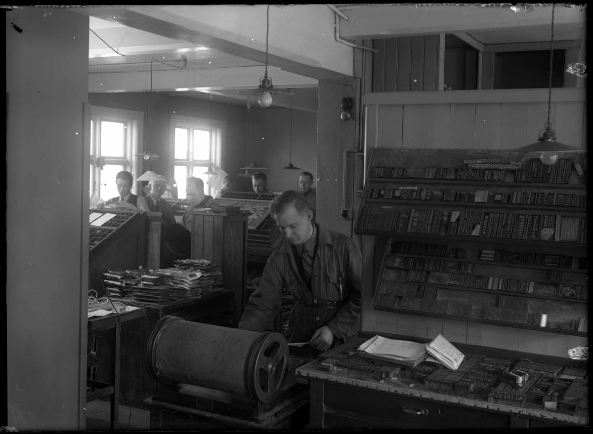 Félagsprentsmiðjan 1948. Setjarasalur.
