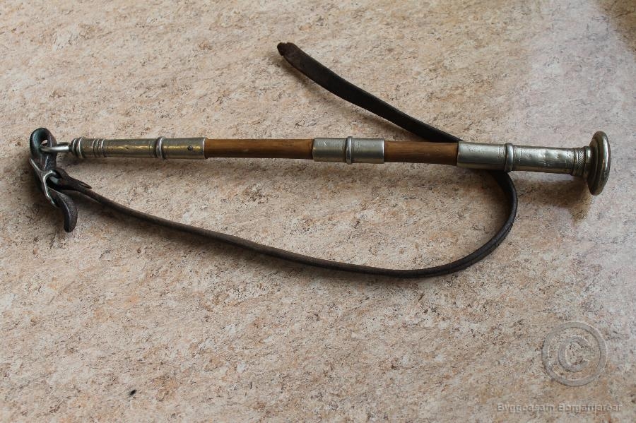 Svipan kom frá Jakobi Guðmundssyni á Hæli í Flókadal (f. 1913). Helga Jakobsdóttir ((1885-1960) á Sturlureykjum hafði gefið honum hana, en talið er að hún sé frá Jóni Jónssyni Borgfirðingi (1853-1913) sem lengi (í um 30 ár) var söðlasmiður á Akureyri. Jón var bróðir Jakobs eldra á Varmalæk (1854-1913).. Svipan er 38,5 cm. löng, silfurbúin og með áfastri leðuról sem er 60 cm. að lengd.
