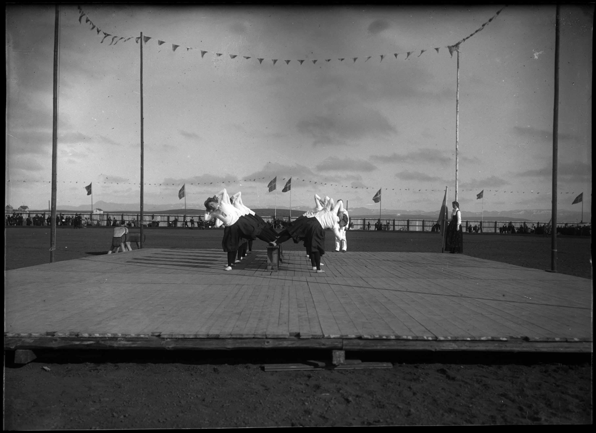 Leikfimiflokkur kvenna sýnir. Íþróttasýning