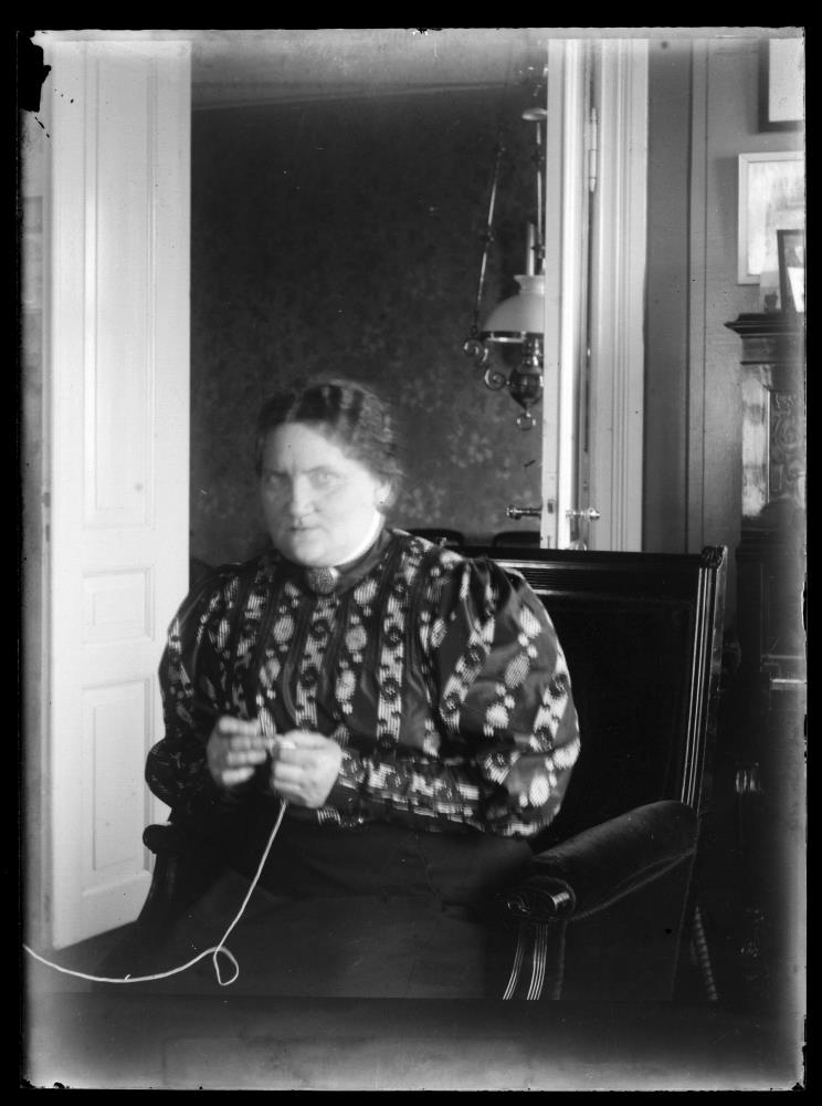 71. Kona situr á stól í stofu með hnykil í hendi og vindur upp ? Kristín Þorvaldsdóttir 1907.