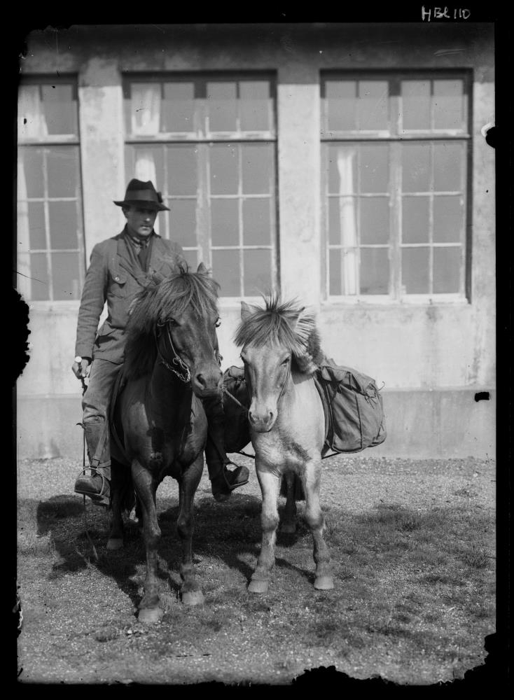 Sveinn Sveinsson bóndi á Hrafnkelsstöðum á hesti.
