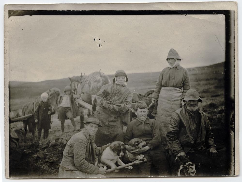 Fólk við mótekju í Grafarholti. Björn Birnir og heimilisfólk hans.