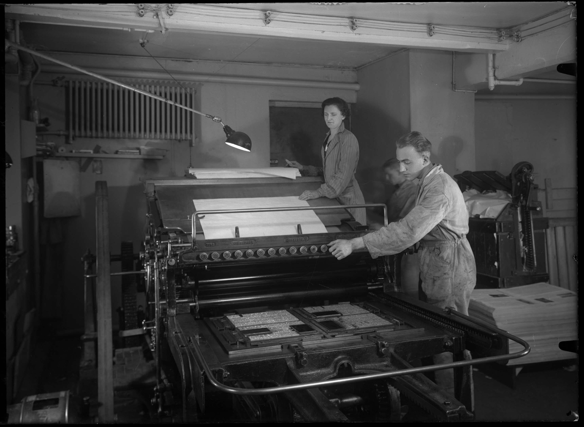 Félagsprentsmiðjan 1945-46. Pressusalur.