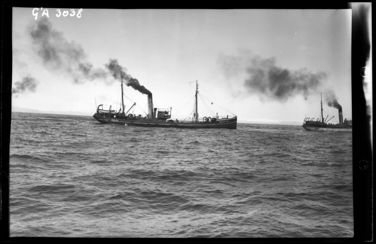 B/v BALDUR RE 244 . Skipið á veiðum. Óþekktur togari til hægri á mynd.