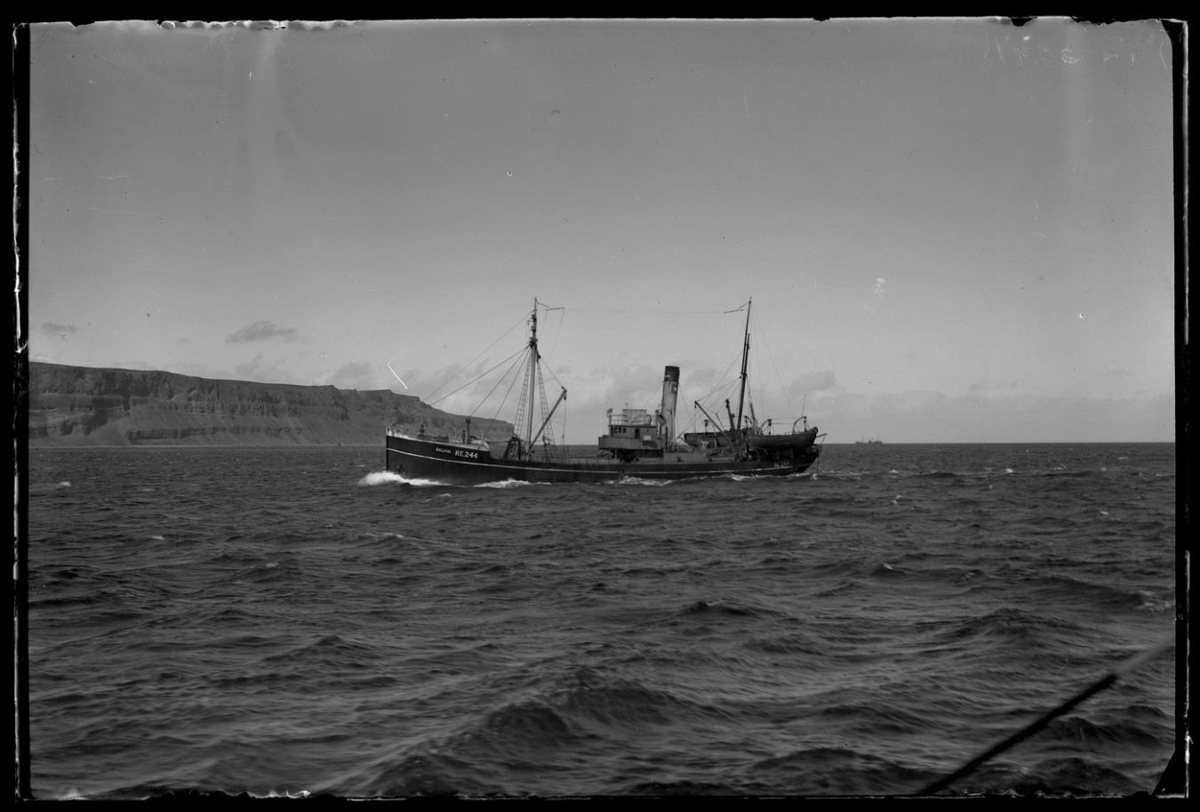 Skipið búið til síldveiða. Lagt upp á Djúpuvík. Mun vera á siglingu inn Reykjafjörð á myndinni.