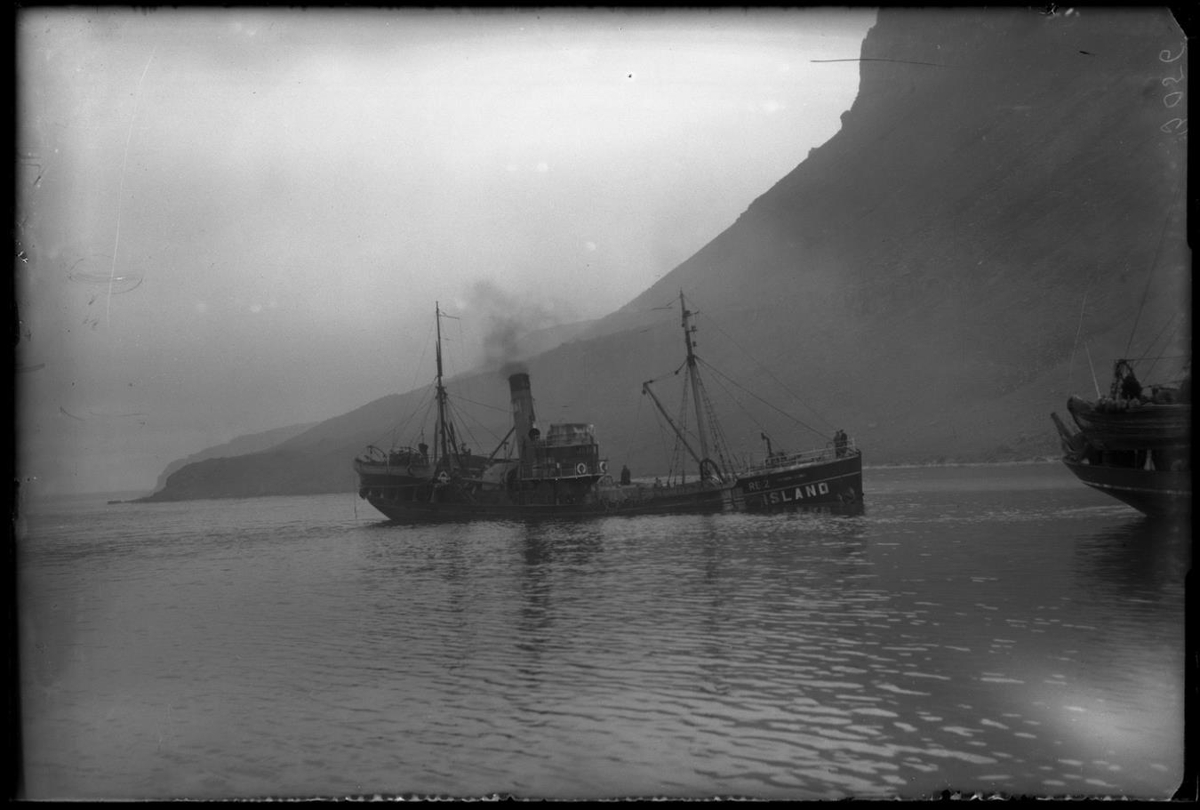 Skipið útbúið til síldveiða. Nótabátur í davíðum. Skipið borðhækkað vegna síldveiðanna.