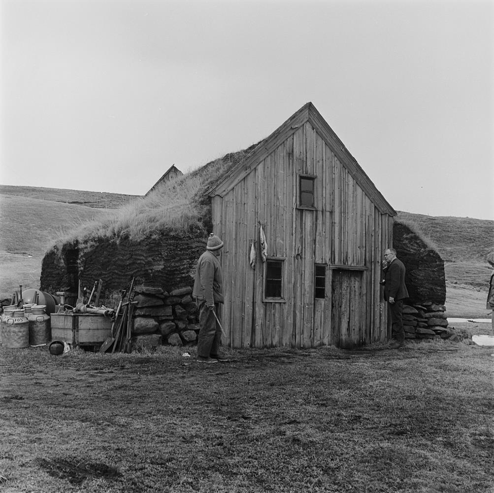 Guðlaugsstaðir í Blöndudal, A.-Hún., smiðja, Guðmundur Pálsson bóndi t.v., Gísli Gestsson og Valdís Bjarnadóttir.