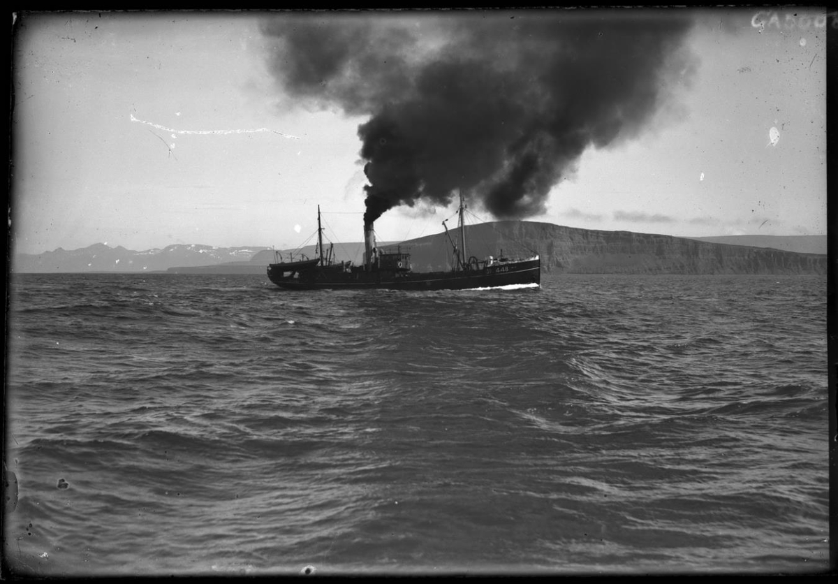 Togarinn Ýmir GK 448. Rýkur mikið