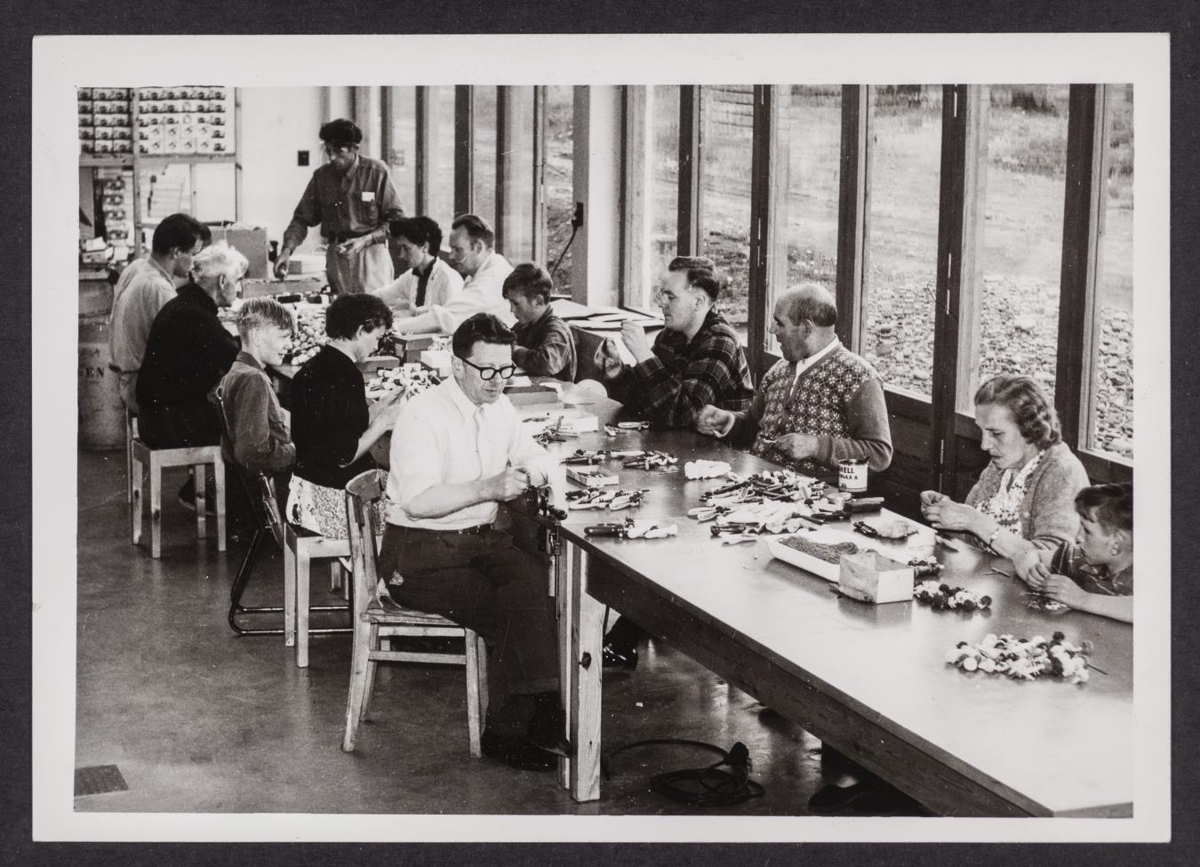 ) Myndatexti er „Vistfólk á Reykjalundi vinnur að því að setja saman