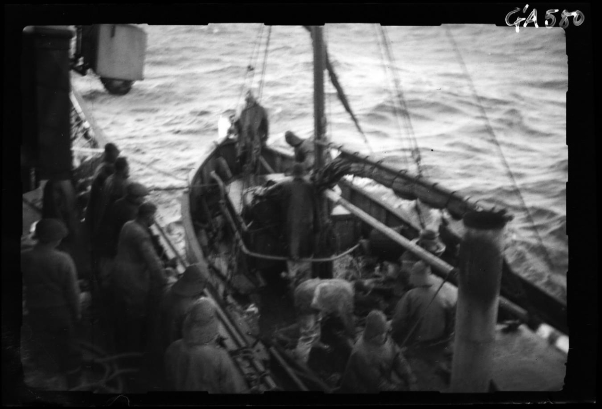 Frá björgun á vélbátnum EINARI EA 426 16. september 1936. Báturinn sökk í roki og stórsjó úti fyrir Siglufirði. Fáeinum mönnum var bjargað um borð í togarann Garðar GK 25 frá Hafnarf. sem sér á lengst t.v. (Árbók Slysavarnarfélags Íslands 1936, Rv. 1937, bls. 22; Sigurjón Einarsson, Sigurjón á Garðari, Hf. 1969, myndatexti bls. 176. Jón Björnsson, Íslensk skip I, Rv. 1990, bls. 95.