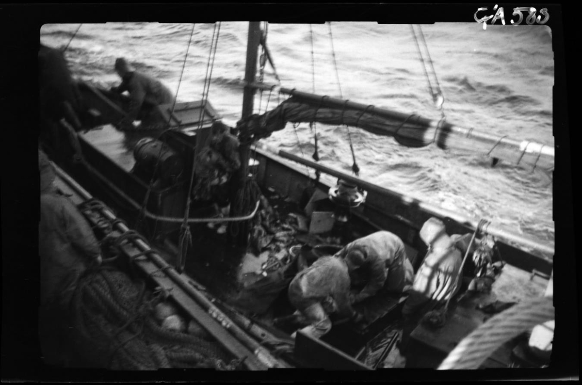 Frá björgun á vélbátnum EINARI EA 426 16. september 1936. Báturinn er við hlið b/v GARÐARS GK 25. Sjá nánar GÁ 580.