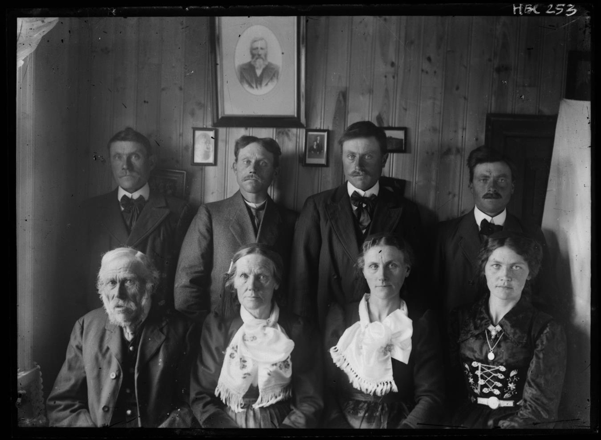 Fjölskyldan á Skeggjastöðum í Hraungerðishreppi. Neðri röð talið frá vinstri: Jón Guðmundsson bóndi þar, Guðrún Bjarnhéðinsdóttir húsfreyja og dætur þeirra Ragnheiður Jónsdóttir húsfreyja Túni í Hraungerðishreppi, Halldóra Jónsdóttir saumakona Reykjavík og efri röð talið frá vinstri: Synir þeirra Halldór Jónsson bóndi Skeggjastöðum, Sæmundur Jónsson bóndi á Neistastöðum, síðar verkamaður Einarshúsi Eyrarbakka, Guðjón Jónsson bóndi Skeggjastöðum og Jón Jónsson múrari Reykjavík.