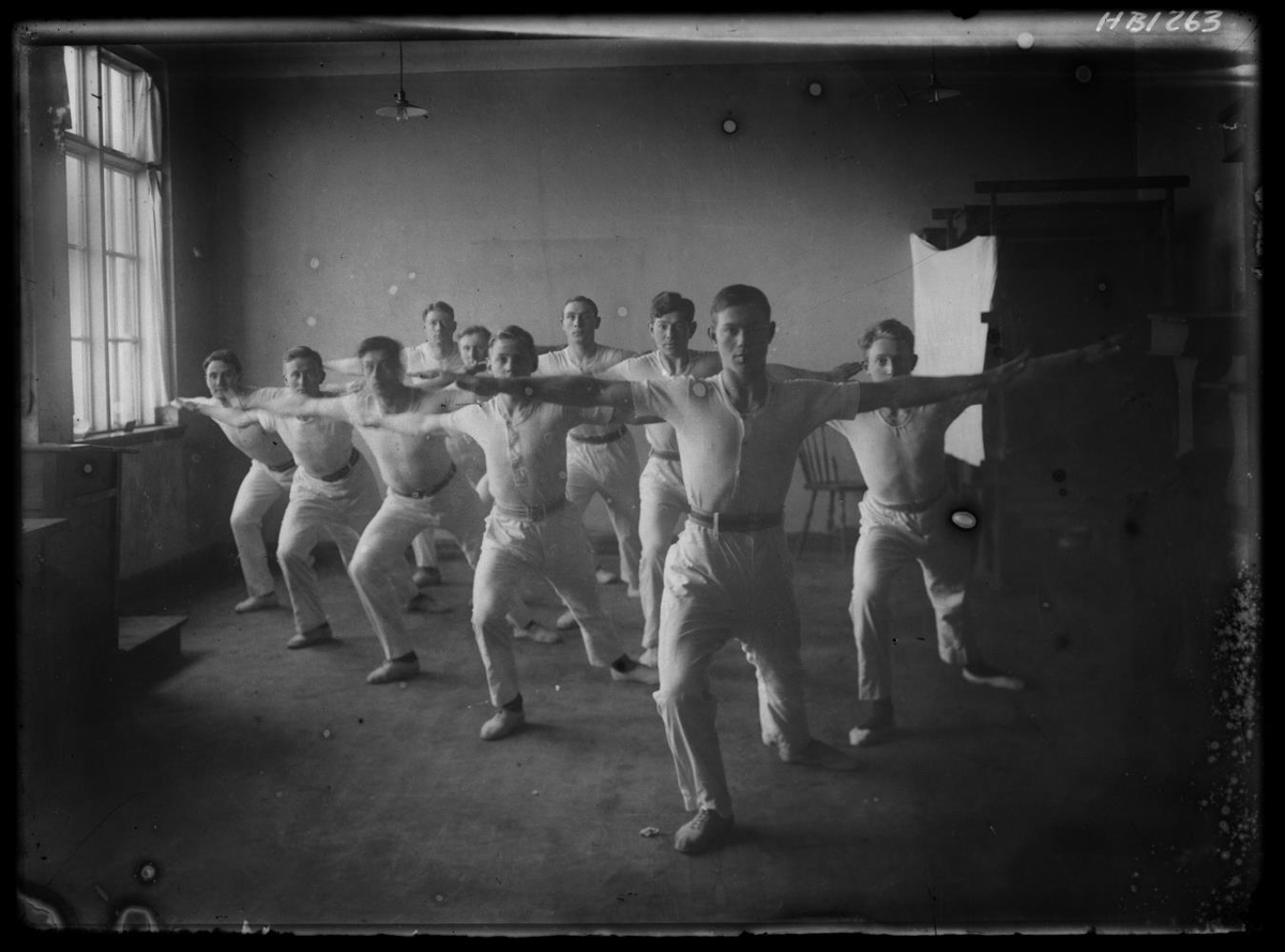 Leikfimiflokkur Ungmennafélags Eyrarbakka (U.M.F.E.) eldri deild. Flokknum mun hafa verið komið á fót á Eyrarbakka 1921-22. Stjórnandi var Ingimar Jóhannesson kennari og er hann lengst til hægri á myndinni. Aðrir eru: Neðri rö- talið frá vinstri: Sigurður Ólafsson vélstjóri, Sandprýði, Konráð Guðjónsson vélstjóri, Hólmsbæ, Kári Sigurðsson trésmíðameistari, Káragerði, Kristbjörn Markússon sjómaður, Steinsbæ og Konráð Gíslason kaupmaður, Káragerði. Efri röð talið frá vinstri: Ólafur Jensson bifvélavirki, Llitlu-Háeyri (Jensbæ), Helgi Guðlaugsson sjómaður, Mundakoti, Steingrímur Gunnarsson bísltjóri, Strönd, Ásmundur Guðnason sjómaður Einarshöfn, Marel Þórarinsson verkamaður og sjómaður Neistakoti.