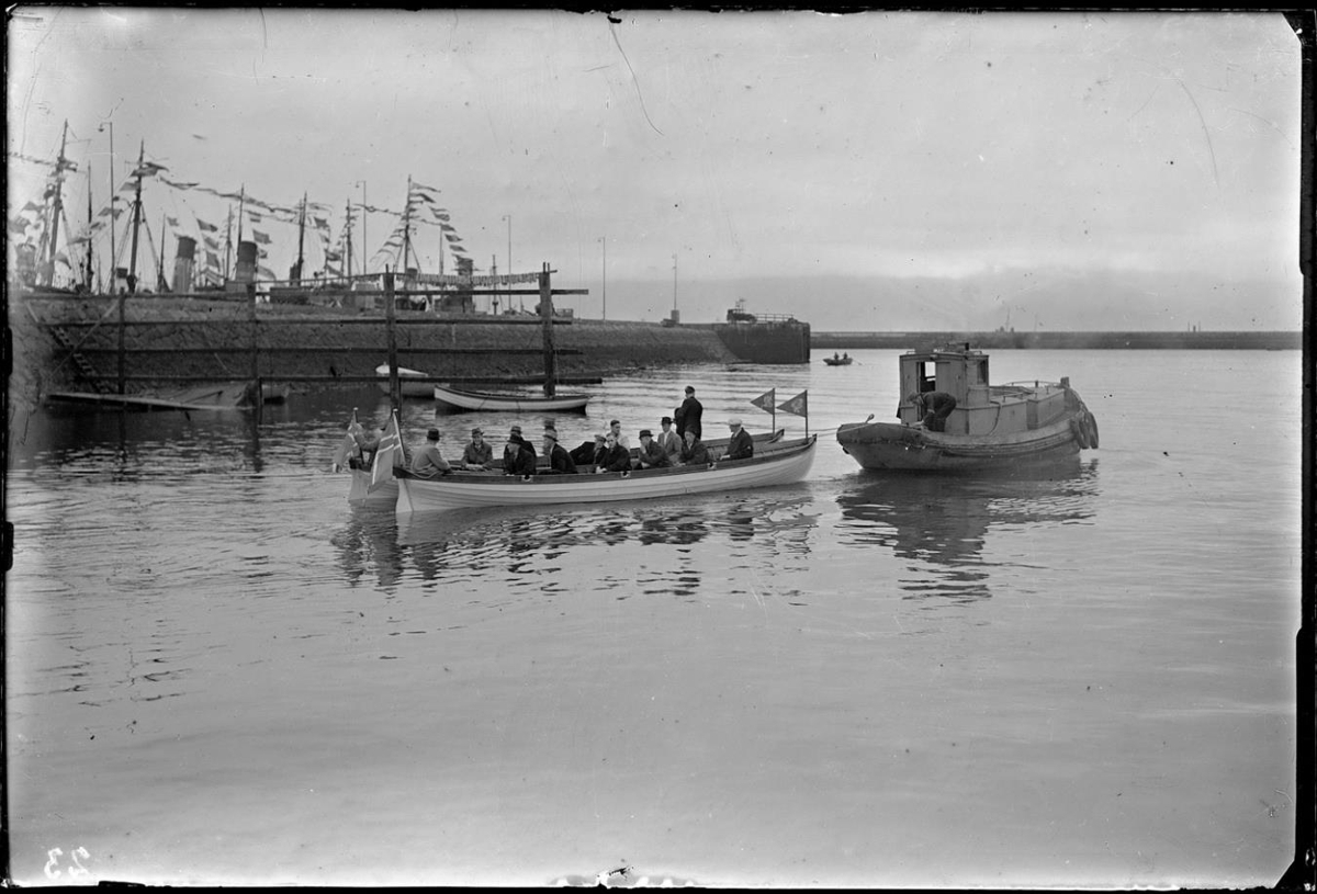 Það er lóðsbáturinn Jötunn, sem dregur kappróðrabátana, að sögn heimildarmanns sem var gjörkunnugur við Reykjavíkurhöfn, enda togarasjómaður um áratugi. Sbr. nr. 8032.