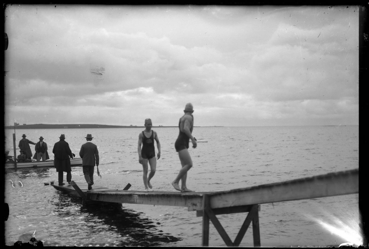 Frá sundkeppni í Örfirisey, líklega sundmóti Íslands, um 1930.