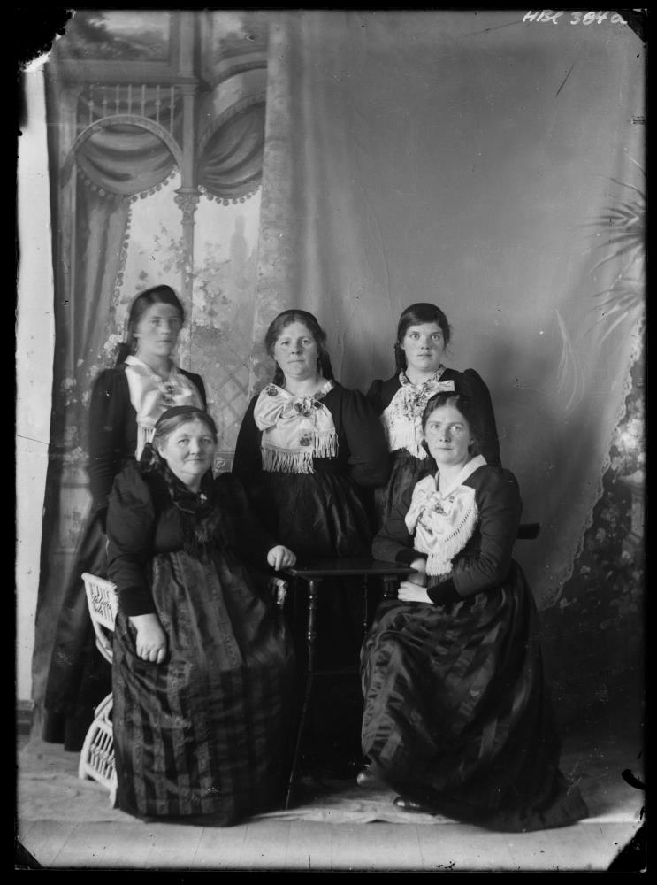 Sigríður Þorleifsdóttir, Sylvía Guðmundsdóttir (sitjandi) Sólveig, Guðbjörg og Elía Guðmundsdætur. Kona og dætur Guðmundar Ísleifssonar á Háeyri.