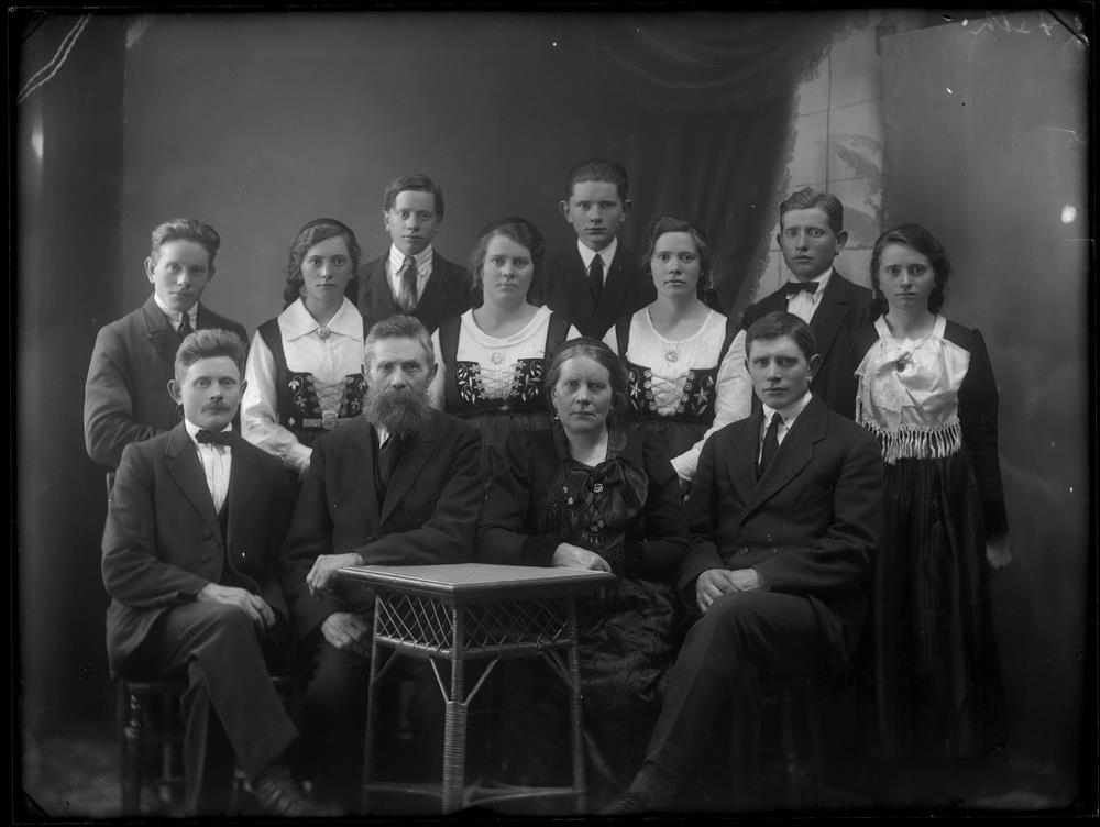 Guðlaugur Hannesson, Gerðakoti í Ölfusi og Guðrún Guðmundsdóttir með börn sín. Nafnsett.