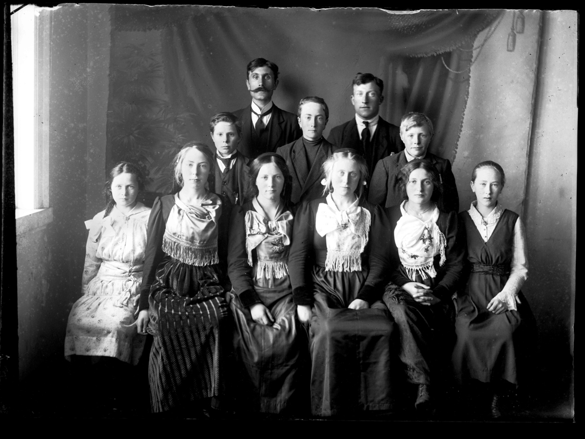 í efstu röð. Nemendurnir tíu talsins eru óþekktir. Sama og