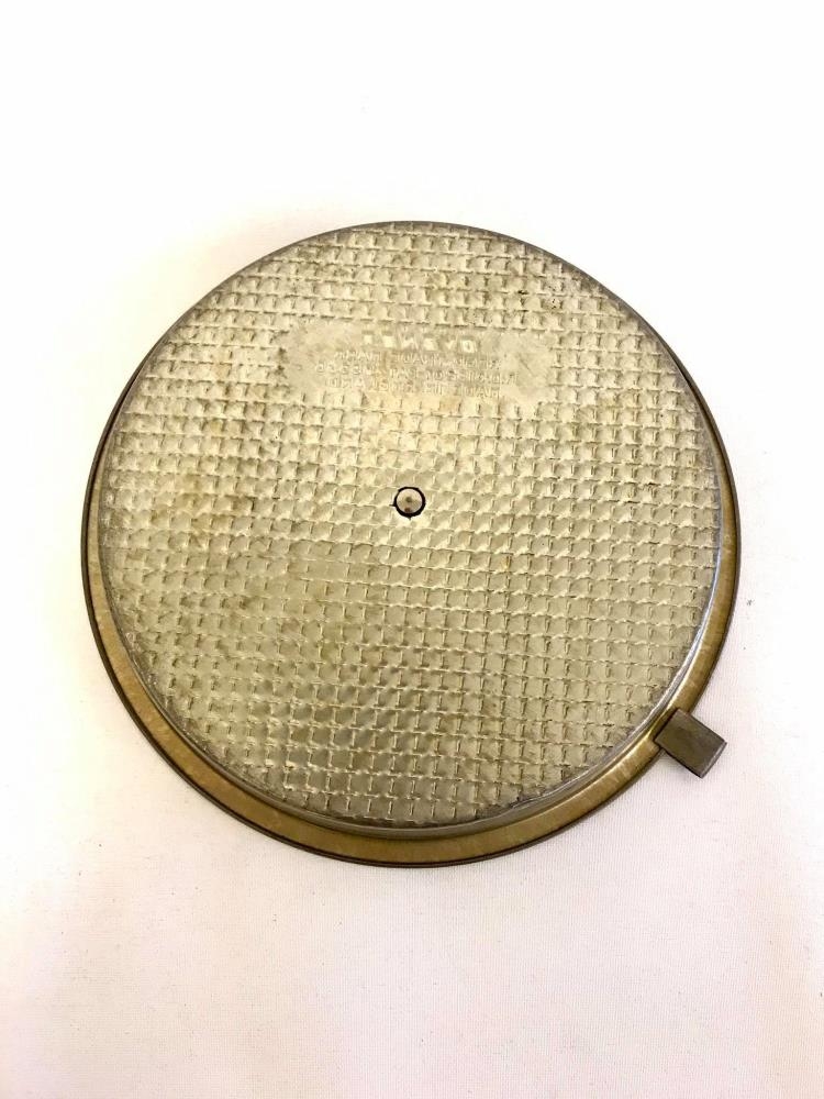 Grátt hringlaga silfur mót, sem á stendur "OVENEX regd. trade mark MADE IN ENGLAND".