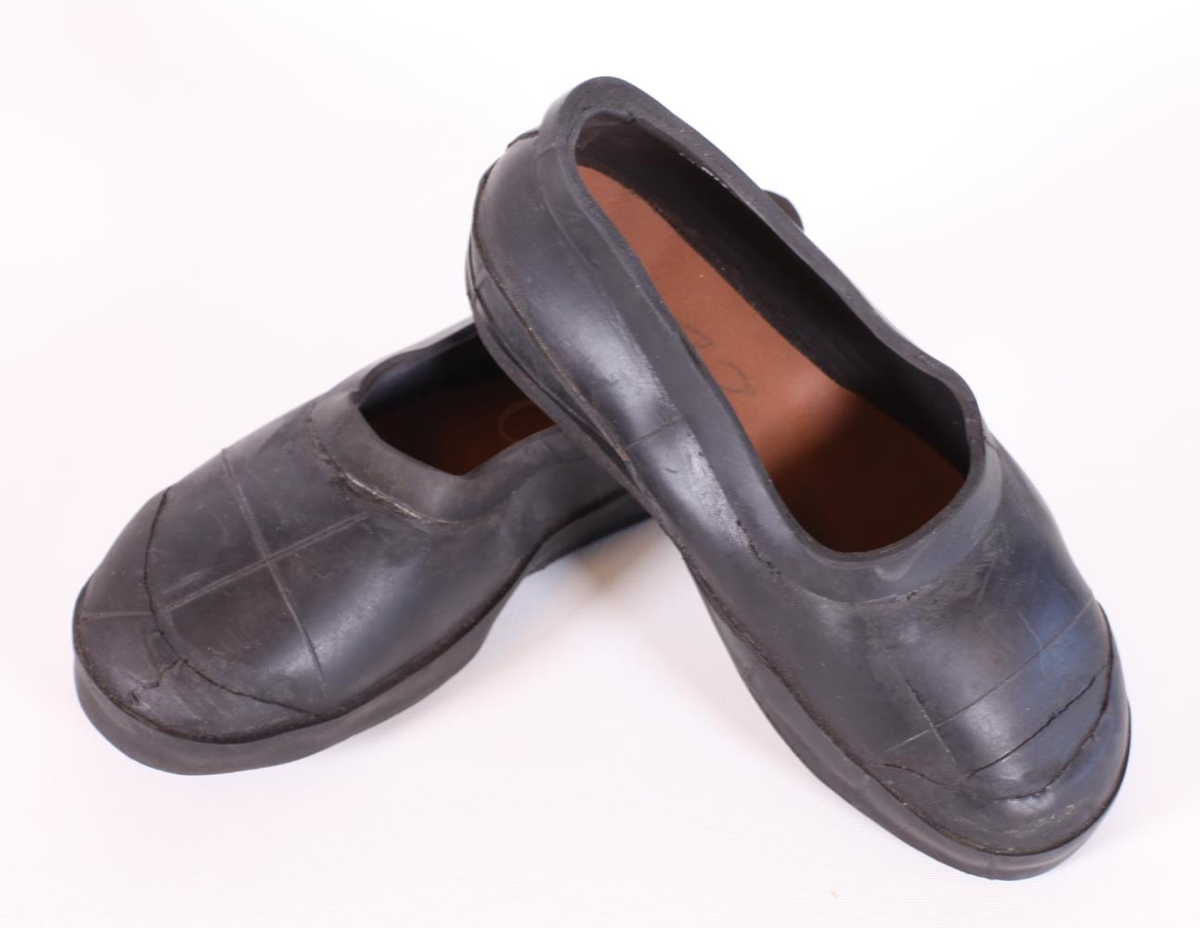 Svartir gúmískór, gerðir úr bílslöngum. Voru seldir hjá Halldóri og gerðir af honum.