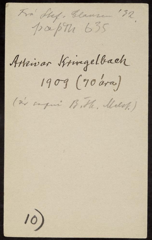 Go Back To SearchDo you know more?Save to My CollectionPrintCopy linkOrder a photoTerms of UseKarlmaður01.01.1909In preservation atNational Museum of Iceland Kringelbach arkivar 1909. Main informationPhotographer: N. Danielsen Georg Kringelbach, DepictedDating01.01.1909MaterialSvart/hvít pósitífObject-related numbersMuseumnumber a: Þ_ÞTh-635Record typePhotographyCollectionUndirskrá: Þorvaldur og Þóra Thoroddsen_Safn (Þ_ÞTh)ClassificationÞjóðlífsmyndirKeywordsDepiction: Karlmaður Depiction: SkjalavörðurNamesKringelbach