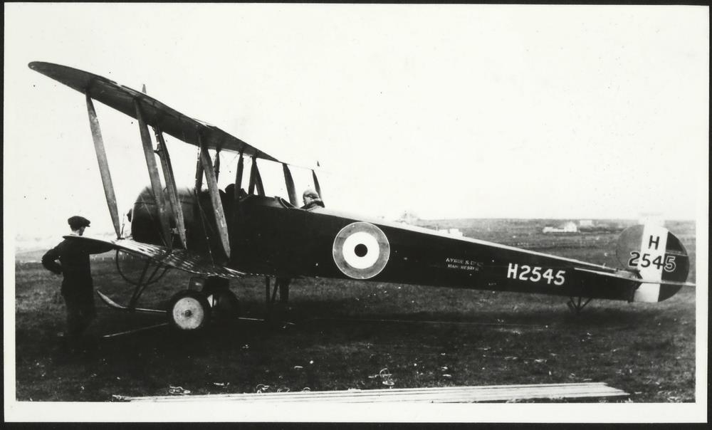 Eftirtaka. Myndin sýnir einshreyfils tvíþekju, AVRO 504K á „flugvellinum“ í Vatnsmýrinni og eru tveir um borð. Á hlið vélarinnar aftanvið vængi er áberandi kringlótt merki. Í tengslum við myndina er skrifað á fyrstu síðuna: „Fyrsta flug á Íslandi. Faber og Fredricksen 3.-25. sept. 1919.“ og blaðaúrklippur á einni síðu þar sem fjallað er um fyrsta flug á Íslandi.
