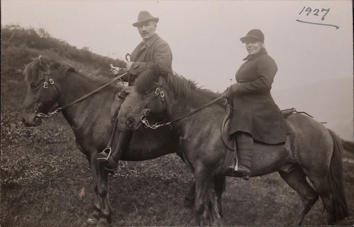 Magnús Magnússon kaupmaður á Ísafirði og kona hans Helga Jónsdóttir á hestum.