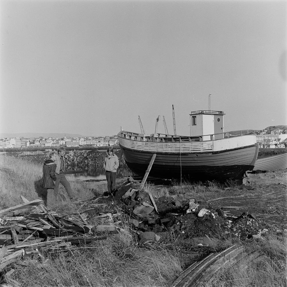 Bátur, smíðaður í Bolungarvík, í Hafnarfirði. Jóh. L. Gíslason, Pétur G. Jónsson, Lilja Árnadóttir.