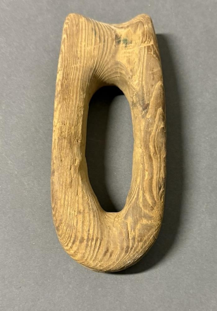 Reipahögld úr furu, eingata (prestsekkja), 13 x 2 cm. Merkt: E.S.