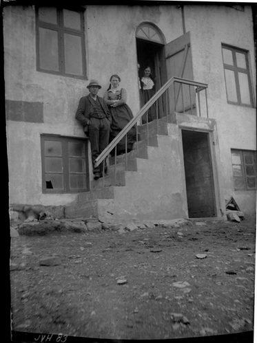 Jón Sumarliðason og kona hans Guðrún Magnúsdóttir á tröppunum í Sökkólfsdal.