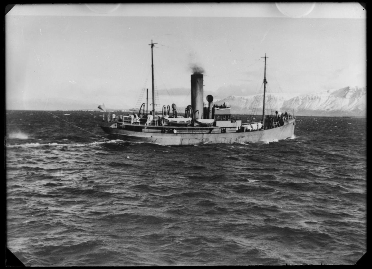 „Ég sé ekki betur en þetta sé OÐINN (1) fyrsta varðskipið sem var smíðað fyrir Íslendinga 1926. Er ekki hægt að lesa nafnið á hinni myndinni, SIG3-7433?Skipið var selt til Svíþjóðar 1936, og hélt nafninu þar.Það kom aftur sumarið 1949 sem fylgdarskip með sænska síldveiðaflotanum.Þar sem snjór er á Esjunni er myndin tekin að vetrarlagi.Skipið er ekki með fallbyssur. Því er ekki fjarri lagi að álykta að þetta sé Óðinn að yfirgefa Reykjavík 27. febrúar 1936.“ (BÞ 2020)