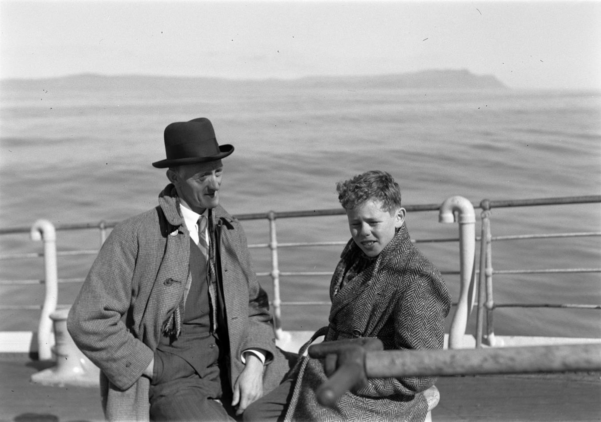 Brynjólfur Jóhannesson leikari og drengur um borð í Esjunni
