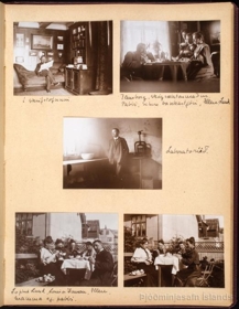 Albúm með 32 spjöldum og innlímdum 132 ljósmyndum, bæði inni- og útimyndum. Skrifaðar skýringar við myndirnar: