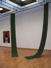 Gerð var eftirgerð: tvær lengjur af bómullarefni, tveir viðarsívalingar (notaðir til að hengja upp) - leifar af baunaspýrum í bómullarefninu. Bómullarefninu er rúllað upp (þó fylgja ekki með málmbakkar eins og með frumgerðinni). Ljósmynd af verkinu uppsettu - Bómullarefnin hengd í loftið í annan endann og látinn rúlla niður á gólf (bakkinn á gólfinu?). Baunaspýrurnar eru grænar og virðast lifandi og ferskar, vaxa af efninu.