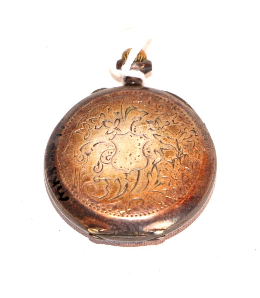 Vasaúr úr 800 silfri. Þv. 3,4 cm, þ. 0,9 cm. Gerðin er cylindre 10 rubis. Margir stafir og tákn eru inn í loki. Kóróna 0,800F 2329-75259 ??49 11,77. Bakgrunnur er hvítur og á honum eru tölustafir frá 1-12. Fjögur strik eru á milli tölustafanna. Bakhlið er flúruð með blómamynstri.