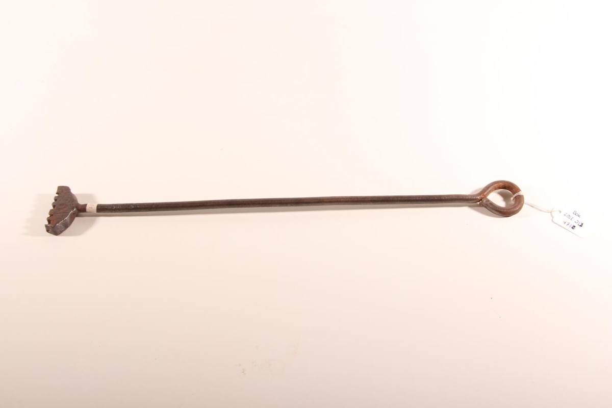 Brennijárn úr járni - eldsmíðað. Lengd 42 cm, Breidd á haus er 6 x 1,2 cm, þvermál lykkju er 4 cm. Brennimerkið er Ellert.