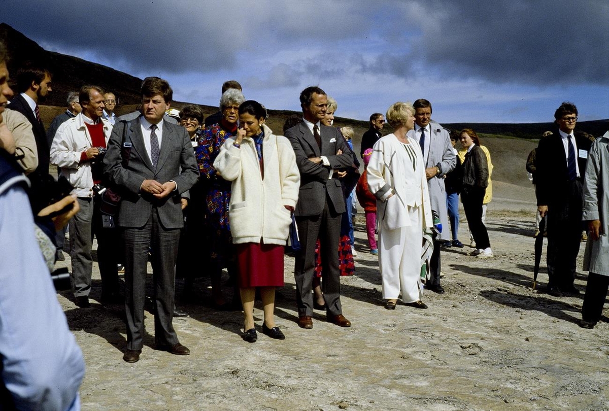 Svíakonungur, Karl Gústav 16. og Silvía drottning og fylgdarlið við Fötu og Strokk. Og Vigdís forseti.
